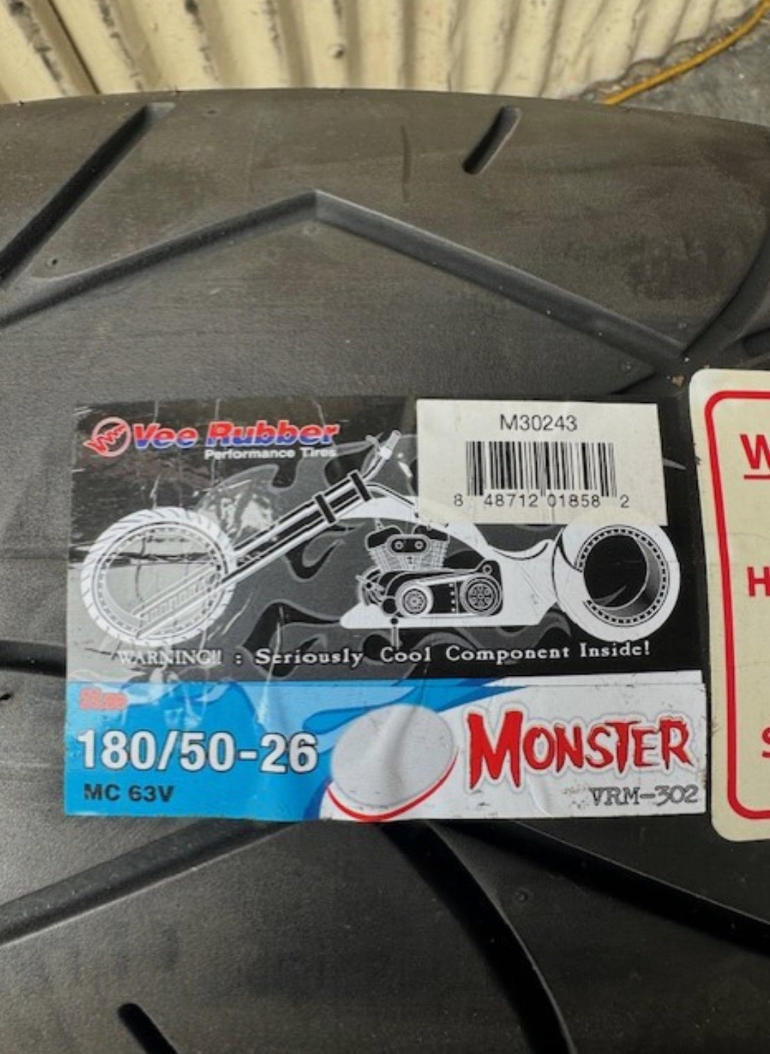 • TIRE SIZE : 180/50-26" VEE RUBBER MONSTER BLACK WALL FRONT WIDE TIRE